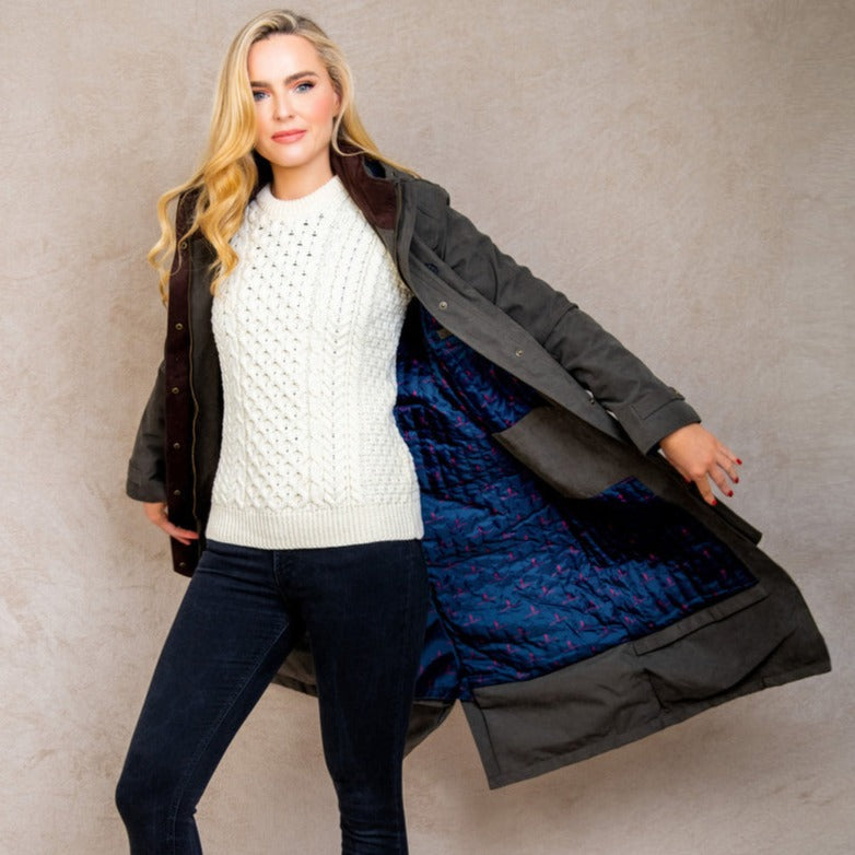 Polyvalerie pour les activités équestres et au-delà: la couche pleine longueur n'est pas seulement un choix élégant pour l'usure quotidienne, mais aussi une option parfaite pour les activités équestres. Son design, similaire à la couche longue de Malvern bien-aimée, en fait un choix fiable et à la mode pour l'équitation et d'autres activités de plein air.