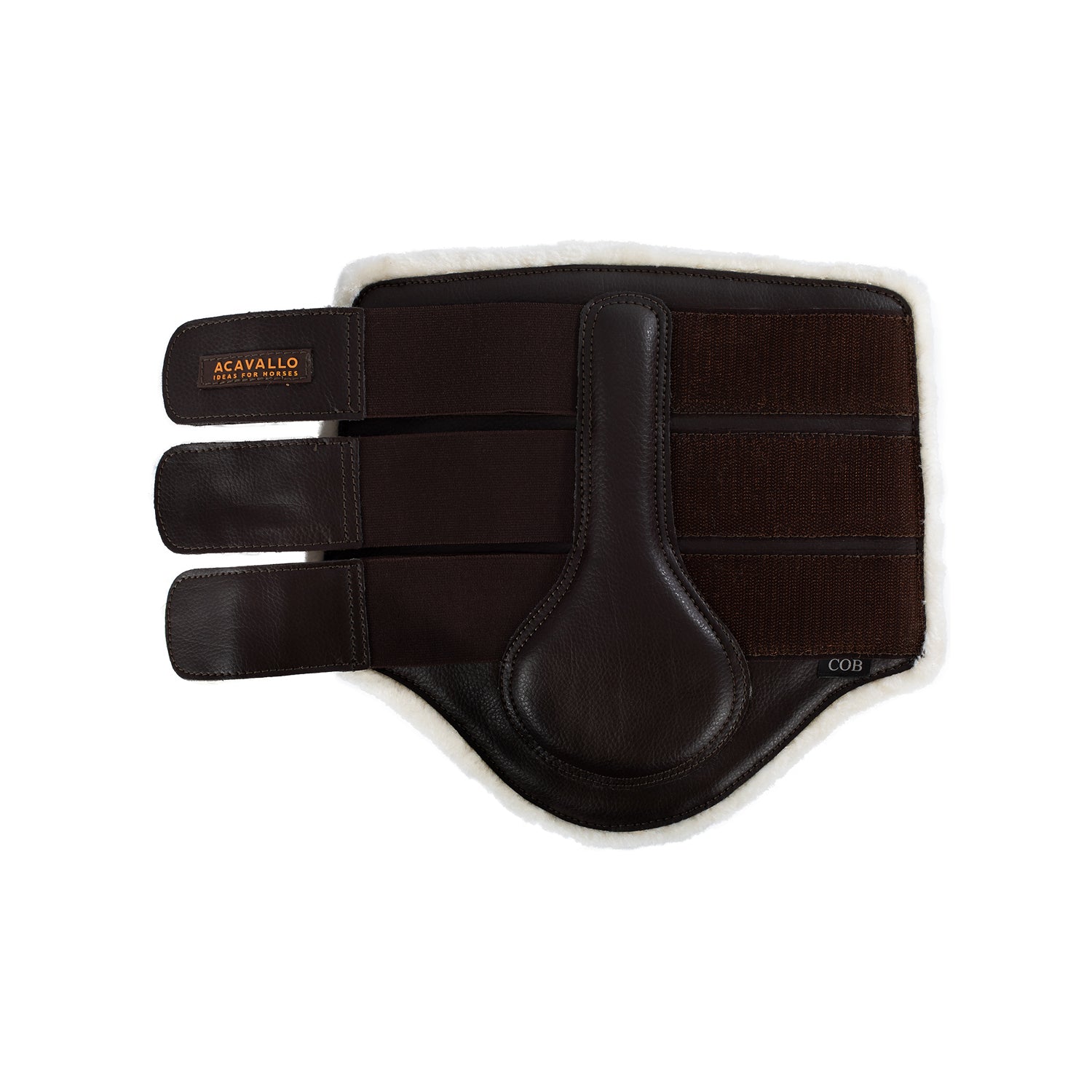 Acavallo hind brushing boots feature eco-leather construction with soft faux sheepskin padding for superior comfort and shock absorption. The triple hook-and-loop closure ensures a secure fit that prevents slipping while allowing your horse unrestricted movement. Inside, the synthetic sheepskin lining protects against rubbing, safeguards the skin, and absorbs impacts. Perfectly suited for dressage, these boots combine protection and comfort to support your horse’s performance.