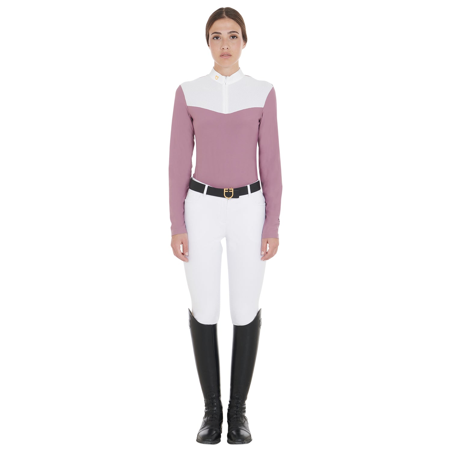 Equestro Women's Competition Polo Shirt In Technical And Mesh Fabric