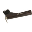 Cure-pied laqué marron foncé accompagné d'une brosse.