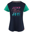 Sauter de joie! Illustration scintillante et colorée sur la poitrine, manches contrastées et tissu spécial sport.