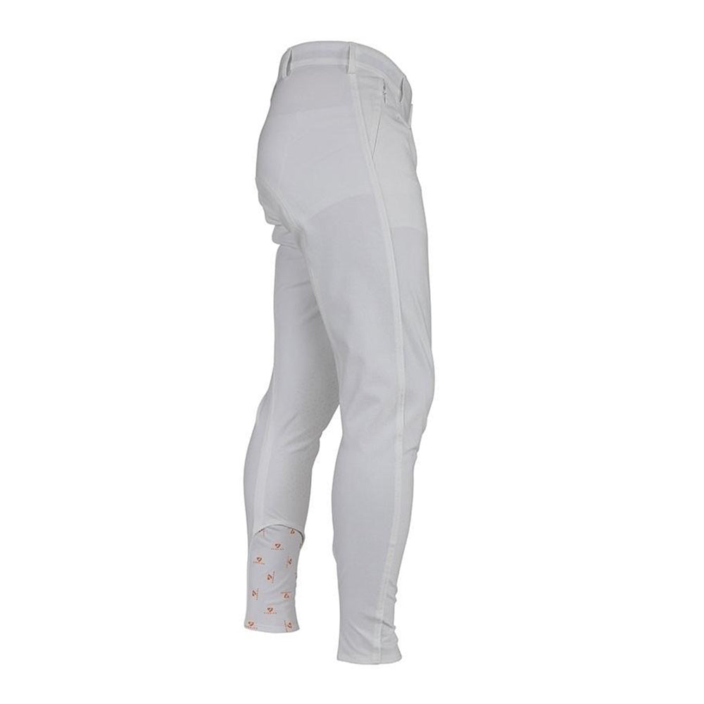 Pantalon d'équitation intelligent et performant avec une assise profilée et des genouillères en silicone. Le détail style : pli devant, poches zippées sur les hanches, passants de ceinture, bas de jambe stretch, imprimés Aubrion.