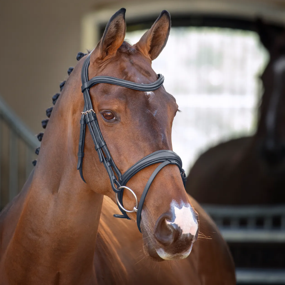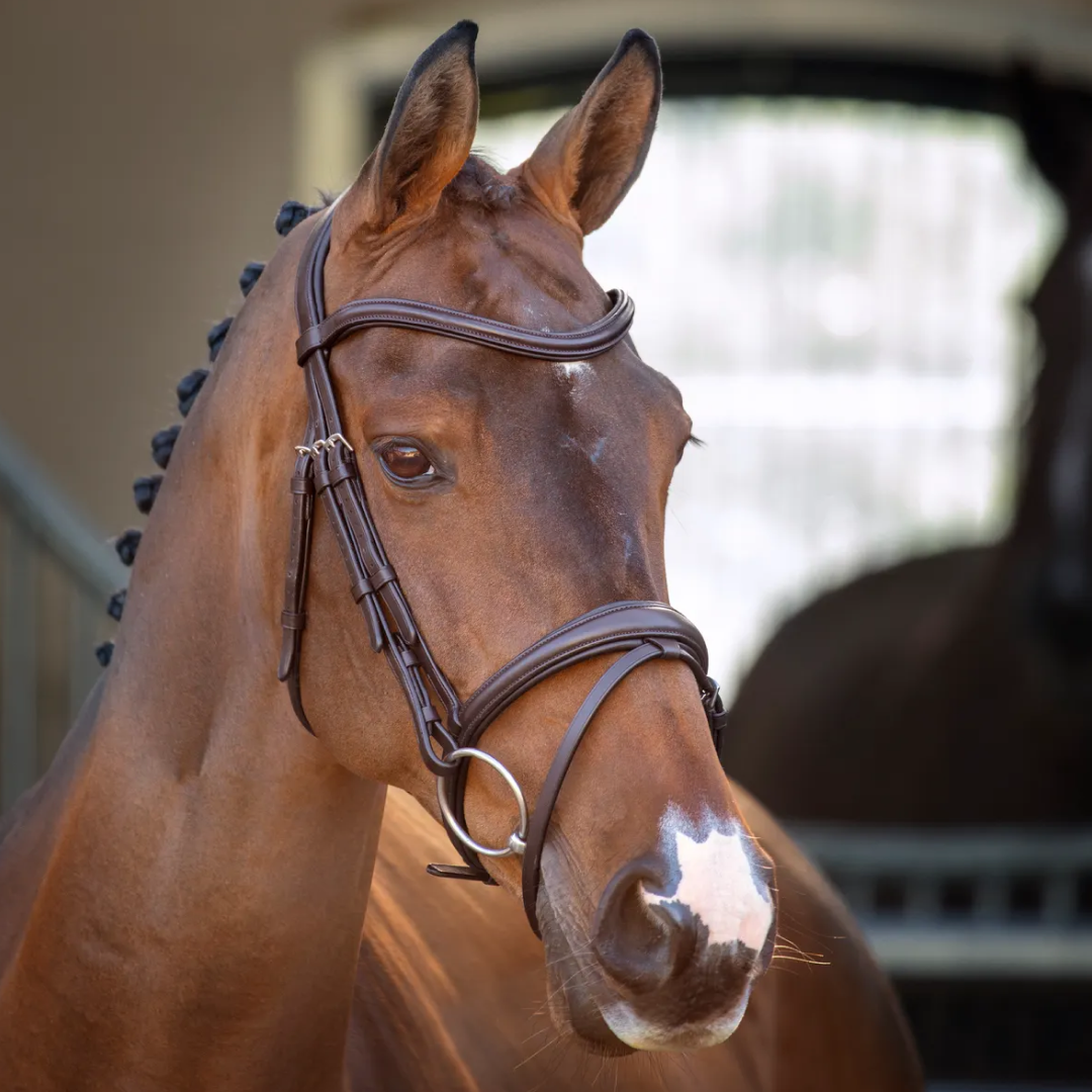 Le travail du cuir est soigneusement fabriqué dans du cuir européen sélectionné pour un travail de bride magnifiquement souple et fiable qui présente les dernières avancées en matière de conception et un confort rassurant pour votre cheval.