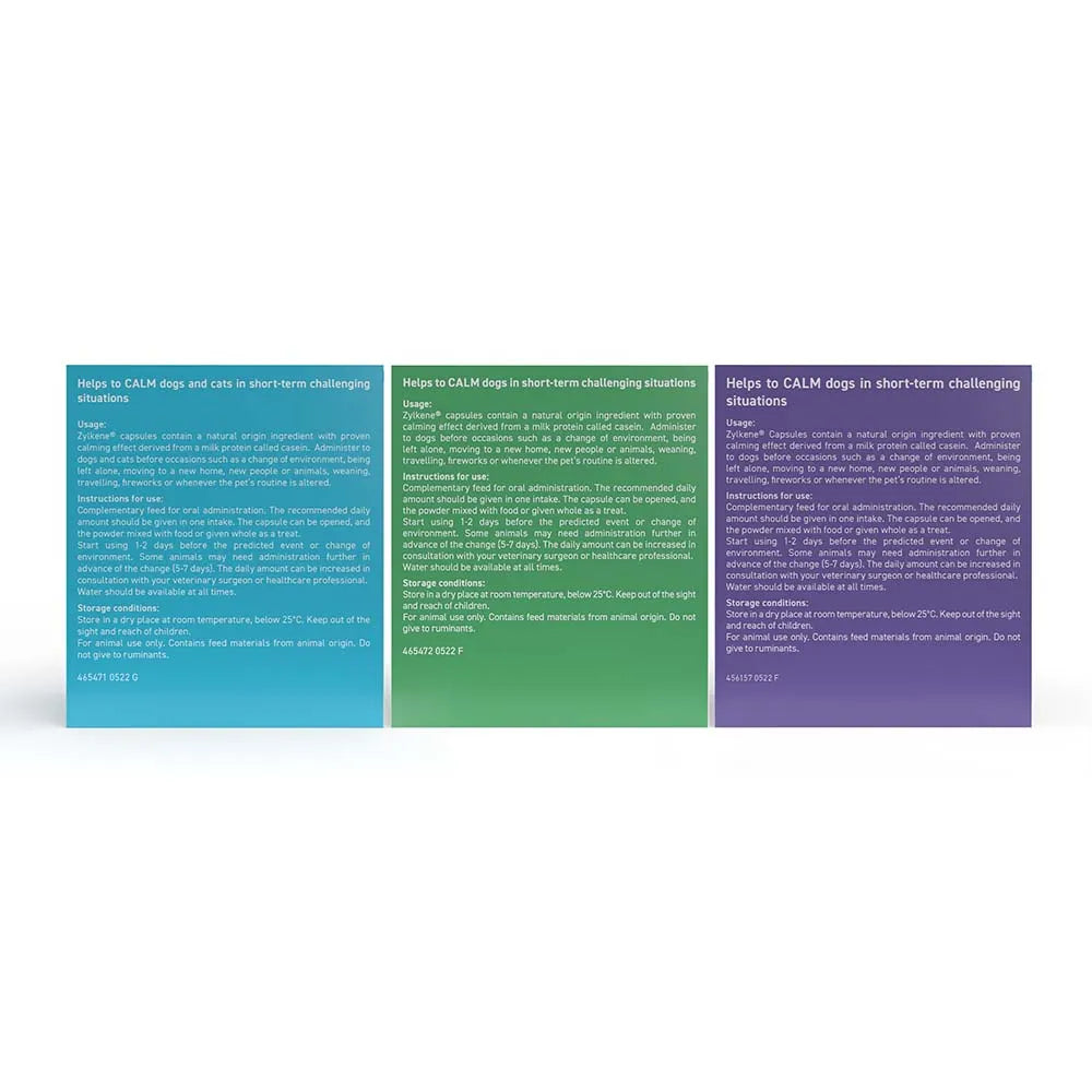 Zylkene contains a natural milk protein with clinically proven calming effects. It is suitable for stressful situations inside and outside the home and Easy to administer simply split the capsule and sprinkle the powder onto your pet's food.