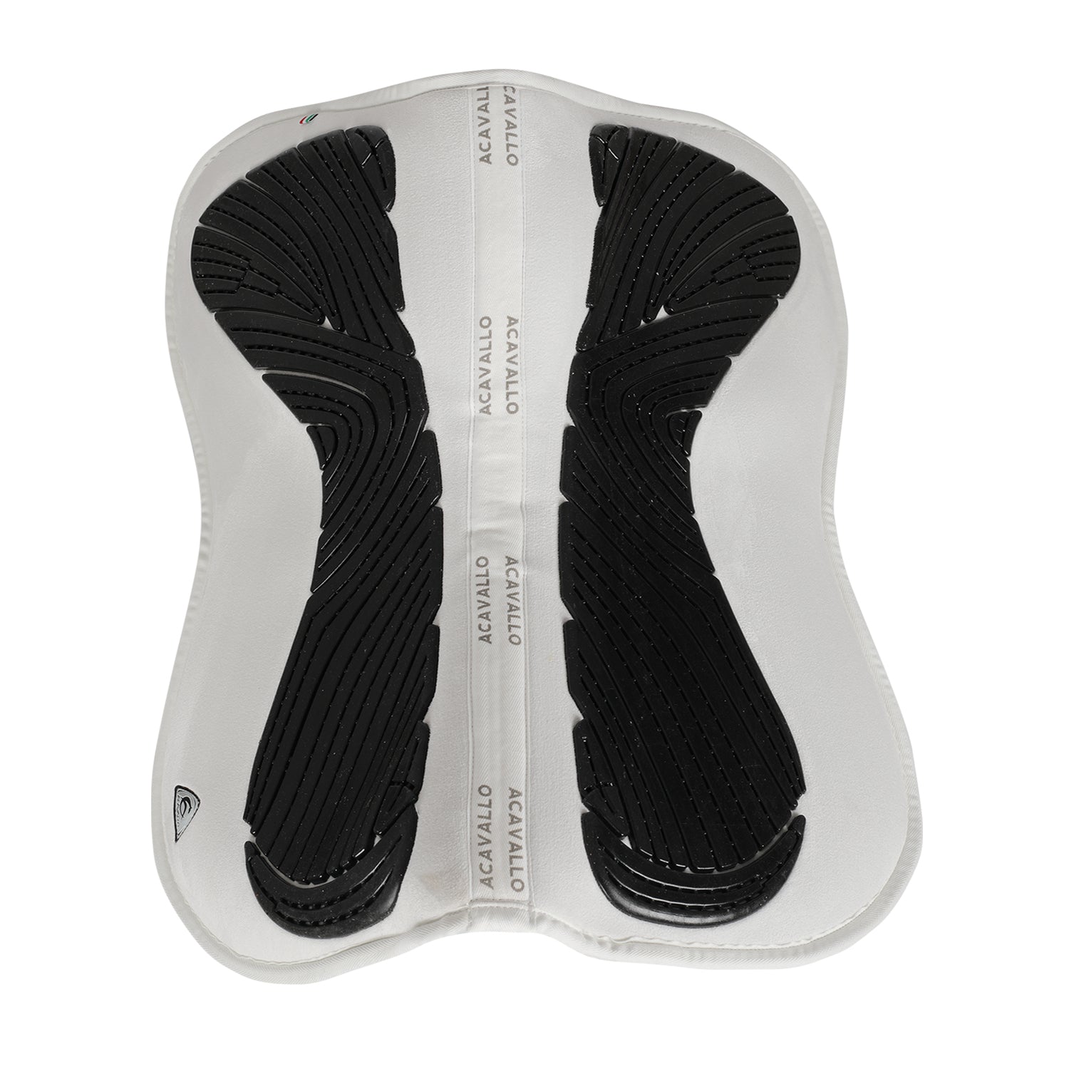 This Acavallo half pad combines memory foam and gel technology for superior shock absorption and stability. Featuring classic withers and spine design in suede with gel grip, it prevents saddle movement and compensates for minor back imperfections. Configurable pockets allow easy adjustment of thickness for a tailored fit. Its anatomical cut and memory foam ensure even pressure distribution and perfect adaptability to your horse’s silhouette. Made with hypoallergenic, non-toxic Acavallo® gel, this pad offers comfort and safety for direct contact with your horse.