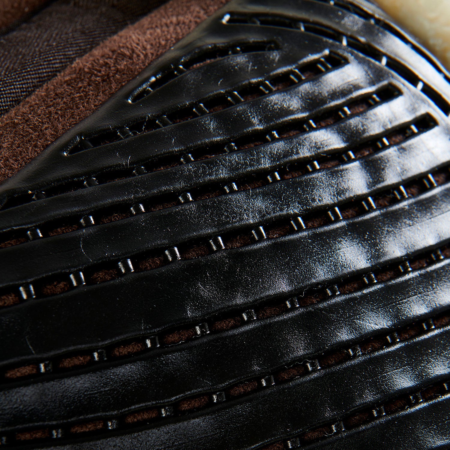 The pad's suede and cut-out faux sheepskin outer lining embraces the saddle, preventing any unwanted movement forward, backward or sideways. This feature ensures a stable and balanced saddle during equestrian activity.