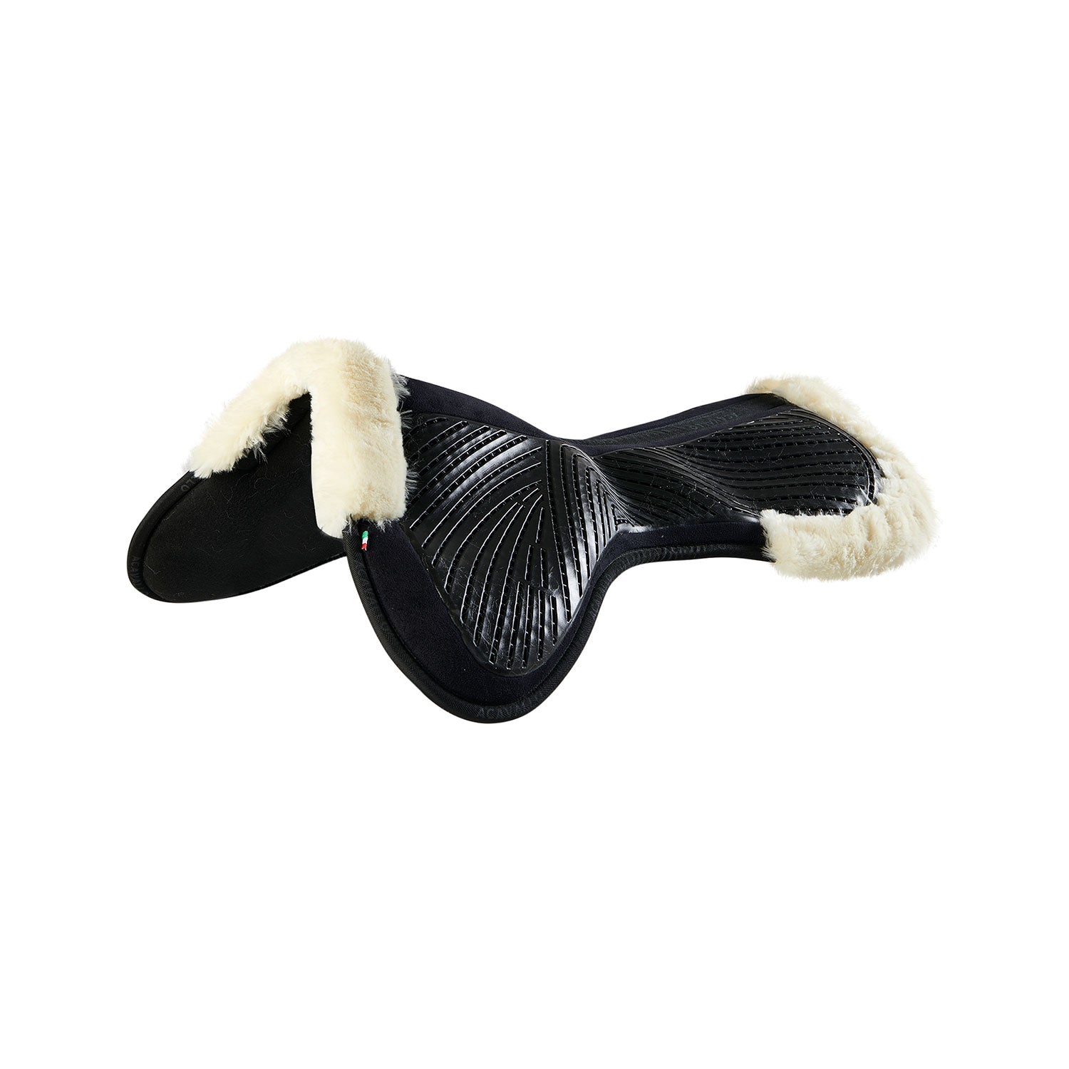 The Acavallo® flat pad in memory foam jumping close contact shape in suede and cut-out faux sheepskin with gel grip is an exceptional solution that combines the performance of Acavallo® gel and memory foam technology, offering your horse a superior riding experience in terms of comfort and safety.