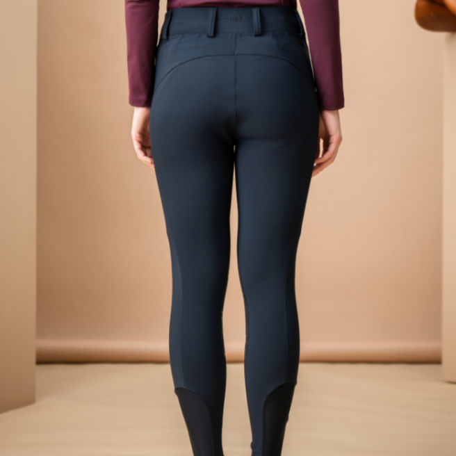 Crafted for performance and comfort, this piece features a 4-way stretch softshell with a faux fly for maximum flexibility, along with a super soft brushed fleece lining that delivers cozy warmth—perfect for winter riding. Strategic darts and contoured seaming create a flattering, curvy fit, while the seam-free inner leg ensures a smooth feel in the saddle. A breathable mesh sock bottom enhances comfort, and UPF 50+ sun protection with moisture-wicking technology keeps you dry and protected. For added practicality, it includes two thigh phone pockets, and a matte silicone knee grip provides reliable stability.