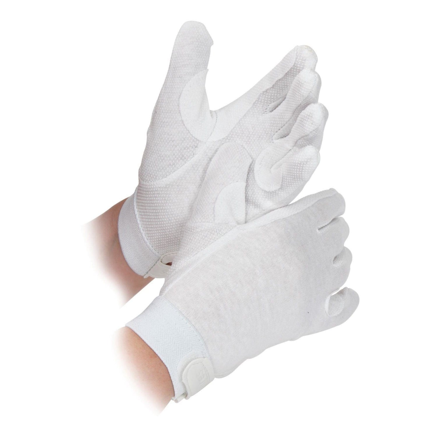 Aubrion Newbury riding gloves offer CottonKnit breathability and stretchy comfort. Rubber pimple palm and finger grips provide security when holding the reins. A stretch wrist and non-scratch touch close fastenings ensure a neat fit. 100% cotton (excluding trims)