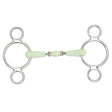 This two ring gag allows the rein to be moved, increasing the leverage if needed. The peanut ensures the mouthpiece will not come in to contact with the palate when in action making it more comfortable.